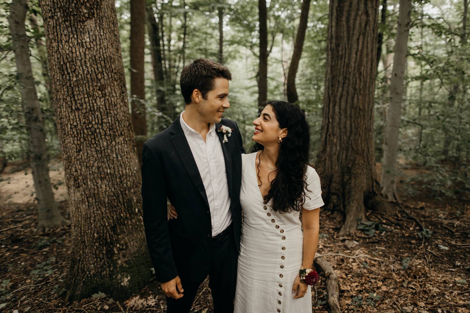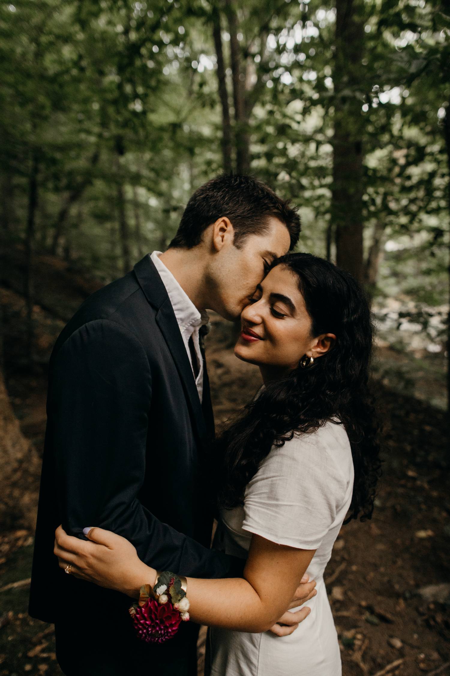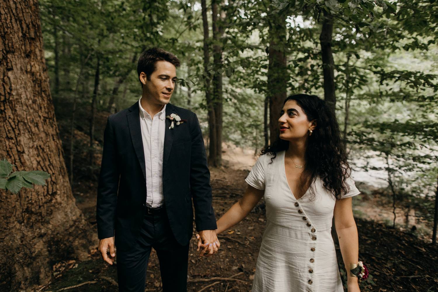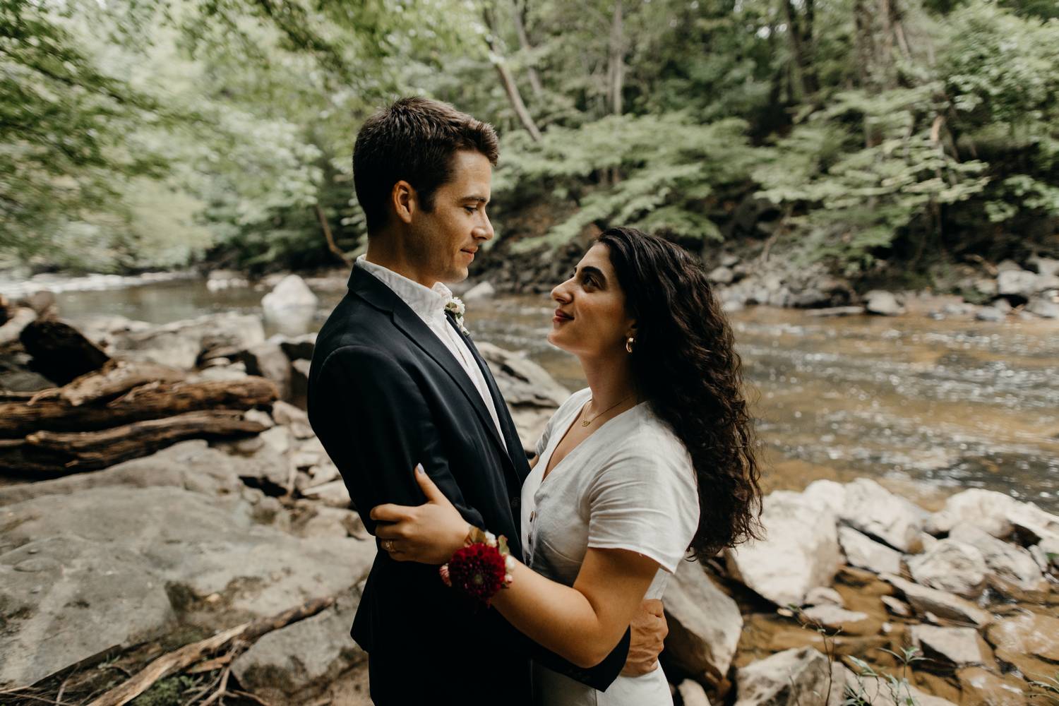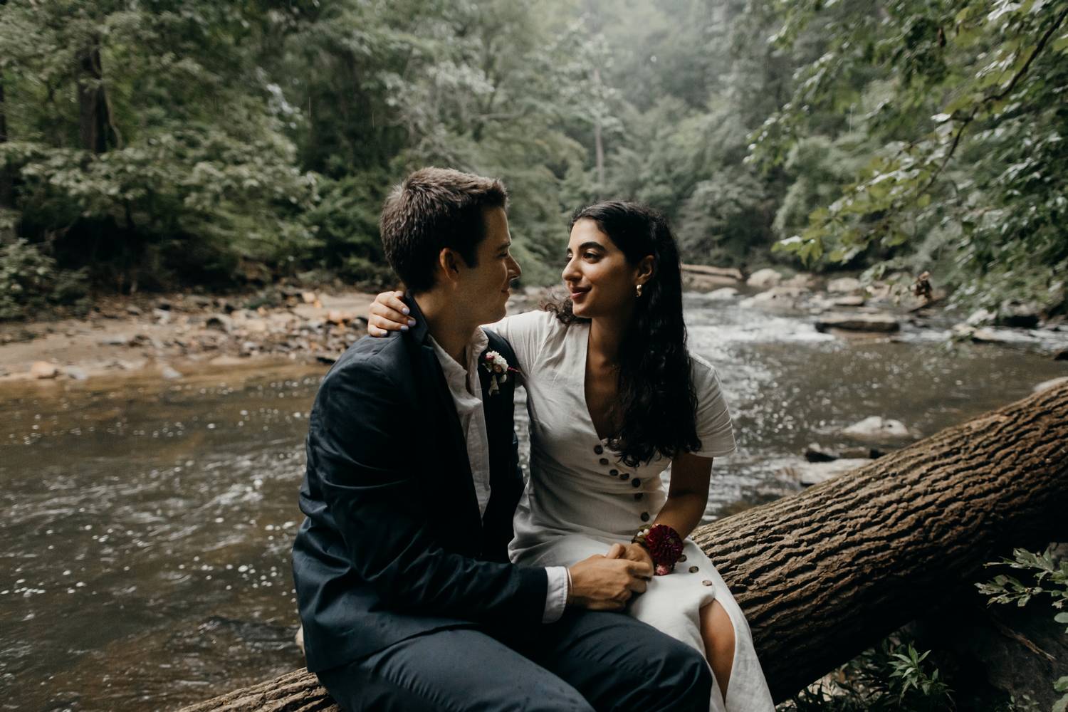A wooded scene is one of my favorite kinds of areas to photograph. It makes such a peaceful and serene backdrop for capturing the love between two people. Nadine and Nic put up with a little hike to get to this river trail in DC, but the results were worth it! Just as we were finishing up it started to rain.